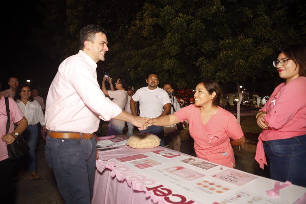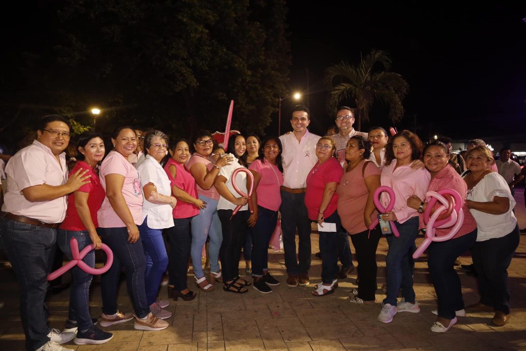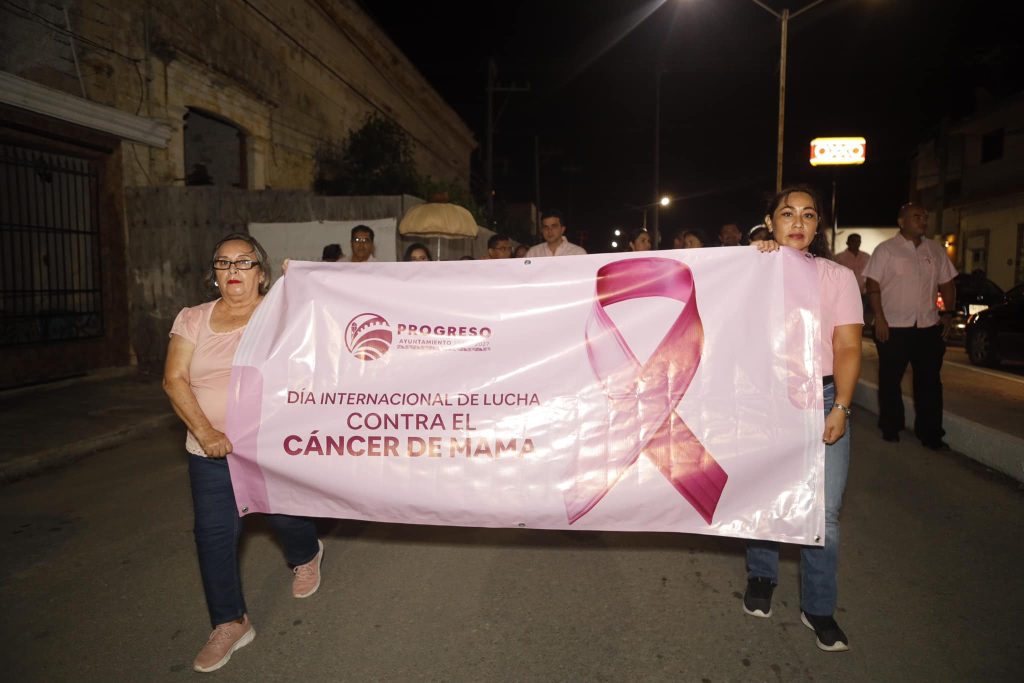 PROGRESO, YUCATÁN, 23/10/2024. —El alcalde de puerto Progreso, Erik José Rihani González, encabezó una caminata conmemorativa por el Día Internacional de la Lucha contra el Cáncer de Mama, con el objetivo de honrar a quienes han enfrentado esta enfermedad y recordar la importancia del cuidado de la salud.
