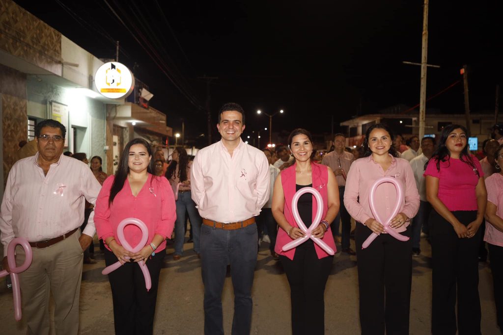 PROGRESO, YUCATÁN, 23/10/2024. —El alcalde de puerto Progreso, Erik José Rihani González, encabezó una caminata conmemorativa por el Día Internacional de la Lucha contra el Cáncer de Mama, con el objetivo de honrar a quienes han enfrentado esta enfermedad y recordar la importancia del cuidado de la salud.