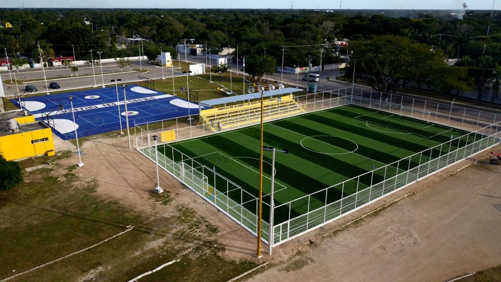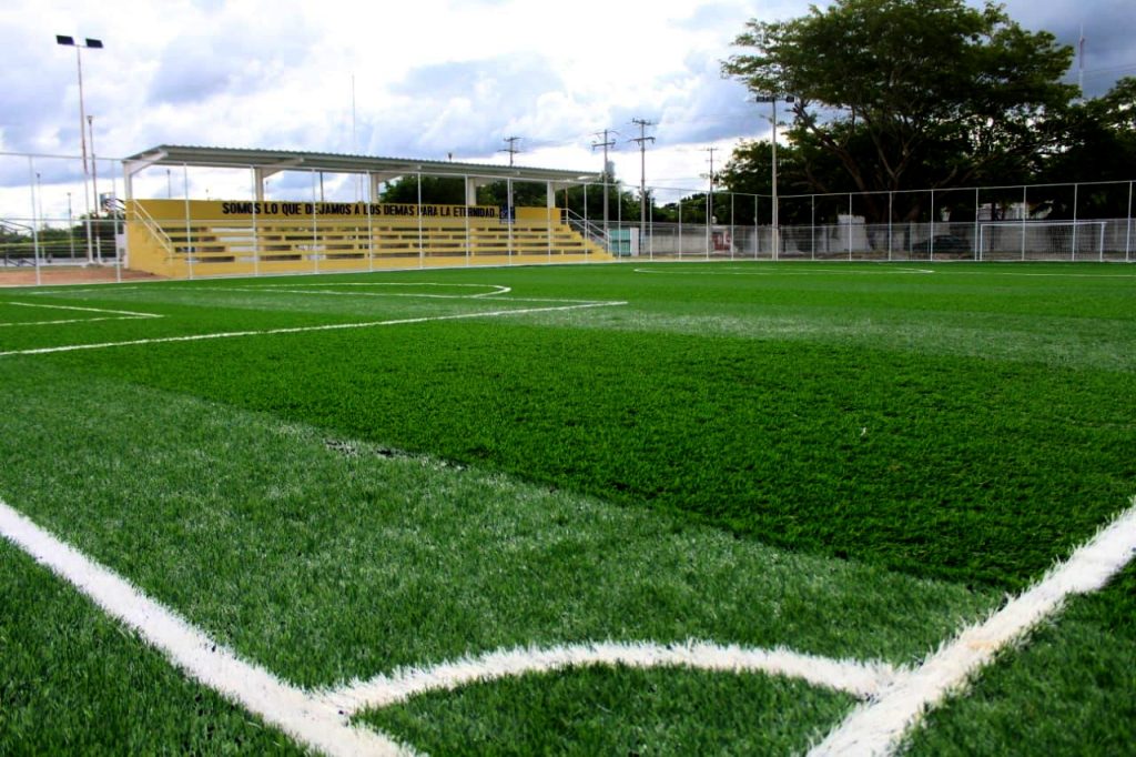 Se cumplió: inauguran primera cancha de pasto sintético de futbol 7, en Umán