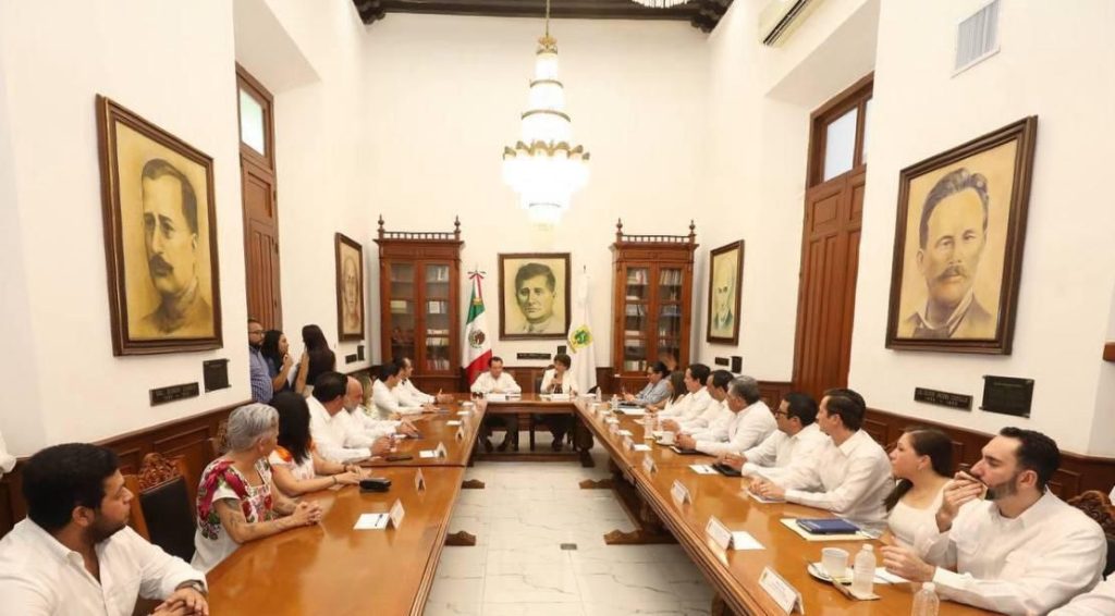 MÉRIDA, YUCATÁN, 26/08/2024. —En un ejercicio inédito que se enmarca en la nueva Ley para regular los Actos y Procesos de Entrega-Recepción de la Administración Pública estatal, promovida por el Gobernador Mauricio Vila Dosal, se realizó la instalación de la Comisión de Transición, encabezada por la titular de la Secretaría General de Gobierno (SGG), María Dolores Fritz Sierra y el Gobernador electo Joaquín Díaz Mena.