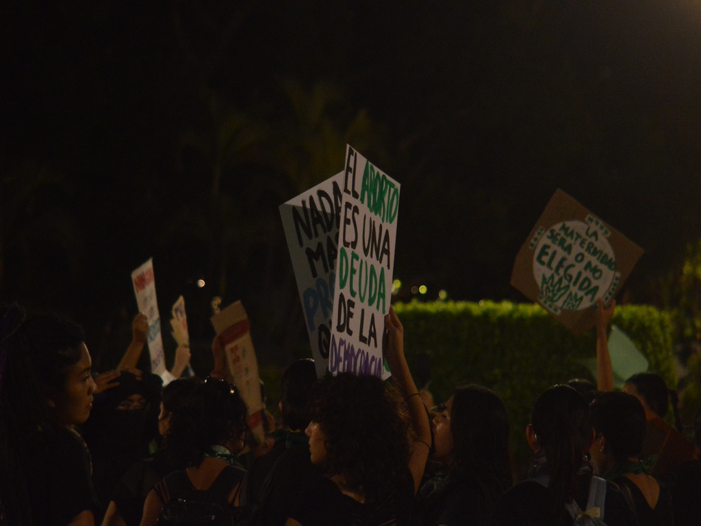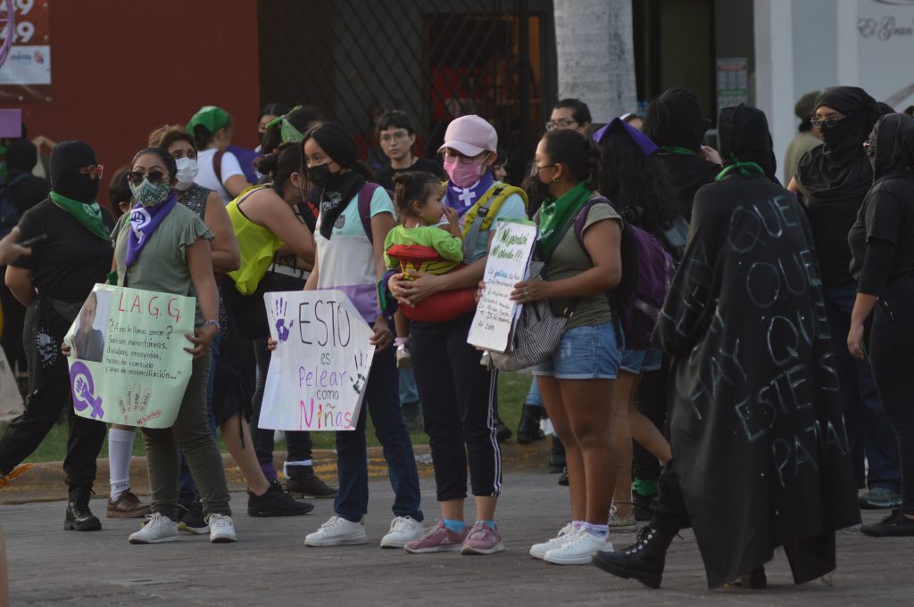 Las manifestantes, vestidas de color negro, encapuchadas, algunas, y gritando consignas como: “Podemos ser peores”, “Te jodes, te jode”, “La policía no me cuida”, “Saquen sus rosarios de mis ovarios” y “Mérida no es blanca, es feminicida”, entre otras más.