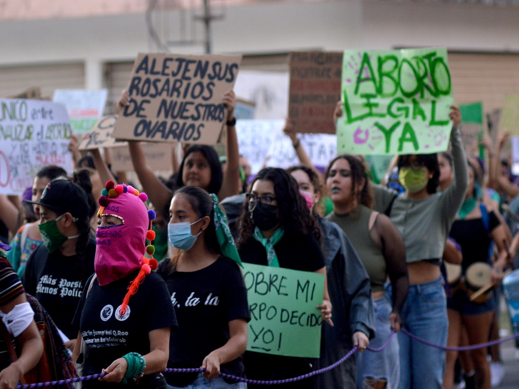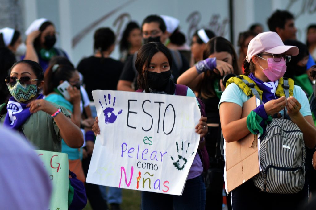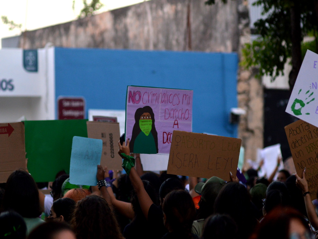 MÉRIDA, 29/09/2022. -Unidas, fuertes, y con la consigna de exigir al Congreso de Yucatán que apruebe la iniciativa del aborto en la entidad, más de 300 mujeres se manifestaron en la capital.