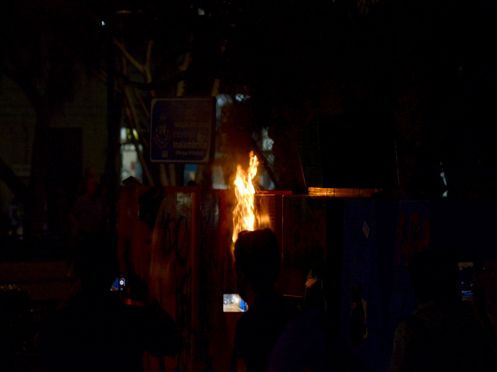 Cuando el fuego consumía “las letras” fueron apagadas con extintores por elementos del Cuerpo de Bomberos, para evitar una intoxicación entre la gente presente.