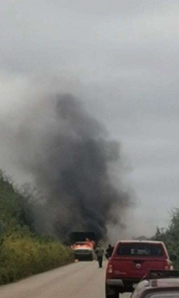 Este viernes, vecinos del municipio del sur, anunciaban que el camión dedicado a recolectar los desperdicios se estaba quemando; y mostraron un par fotos; una el momento y otra al final del hecho.