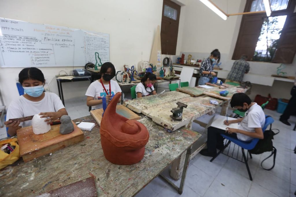 05/10/2021, MÉRIDA. –Artes visuales, música, danza, creación literaria y teatro, de nuevo, llenan de vida y color los 18 edificios del Centro Estatal de Bellas Artes (CEBA), donde cerca del 50 por ciento de las y los estudiantes optó por la modalidad presencial, para fortalecer su aprendizaje y disfrutar las experiencias, con sus compañeros y maestros.