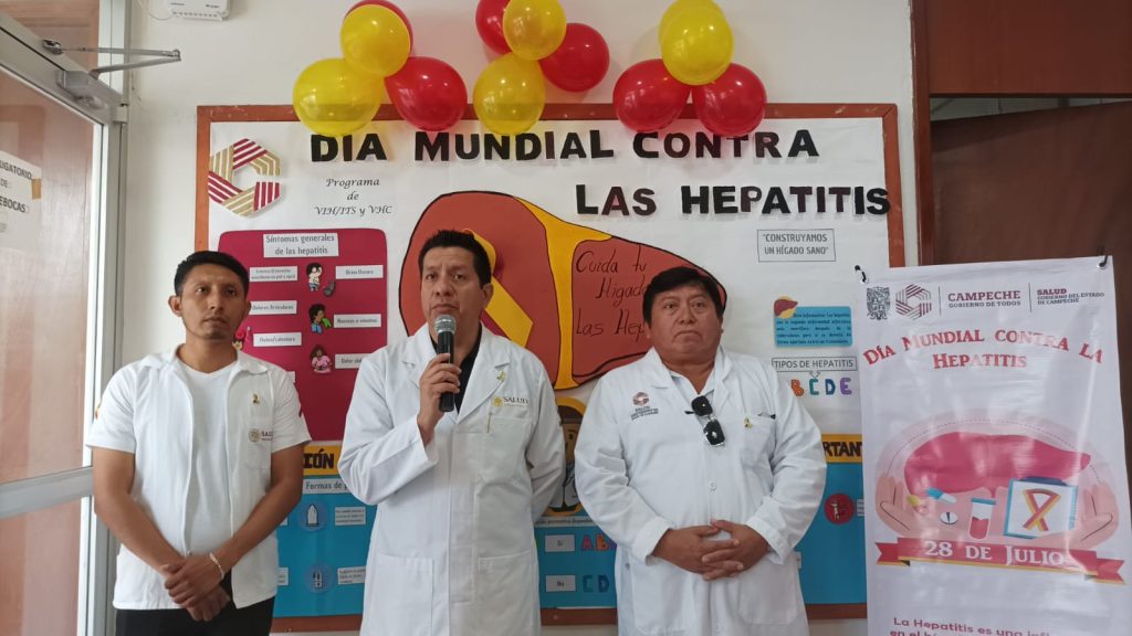 CAMPECHE, 29/07/2023. —Con una cobertura de más de dos mil 500 pruebas rápidas de detección de la Hepatitis realizadas en todo el Estado, la Secretaría de Salud conmemoró este 28 de julio, el Día Mundial Contra esta enfermedad, con la finalidad de erradicarla como un problema de salud pública.