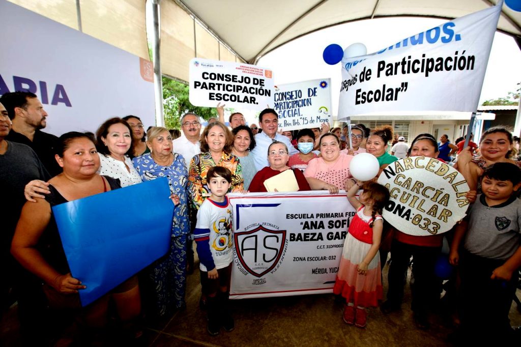 Ante la comunidad educativa de la primaria anfitriona, los directores del turno matutino y vespertino, Raúl Adrián Sánchez Martínez y Merly Neftalí Peraza Kuman, agradecieron a la Segey por el compromiso con la mejora de la calidad educativa a favor de niñas, niños y jóvenes de Yucatán.