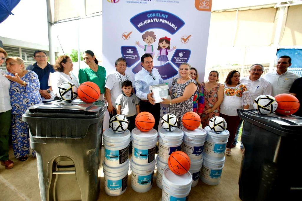 MÉRIDA, YUCATÁN, 28/11/2023. —Para equipar, modernizar, mejorar la enseñanza y fomentar el deporte y la vida sana en alumnas y alumnos, la Secretaría de Educación del Gobierno del Estado de Yucatán (SEGEY), hizo entrega de 22 paquetes “Mejora tu Primaria” a 18 planteles del complejo habitacional Caucel.