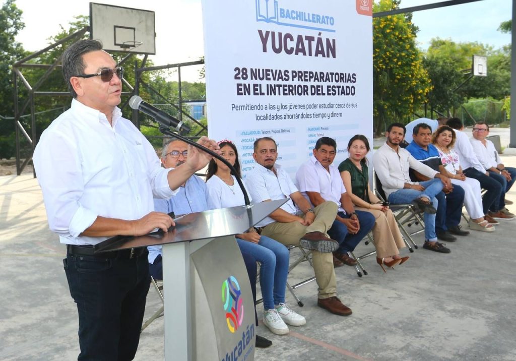 Acompañado de los comisarios municipales y ejidal, Santos Cetz Celis y Luis Armando Celis Cetz, Vidal Aguilar explicó que la oferta educativa de Bachillerato Yucatán es de 3,360 nuevos espacios que funcionan en turno vespertino y tendrán una capacidad de hasta 120 alumnos por escuela.