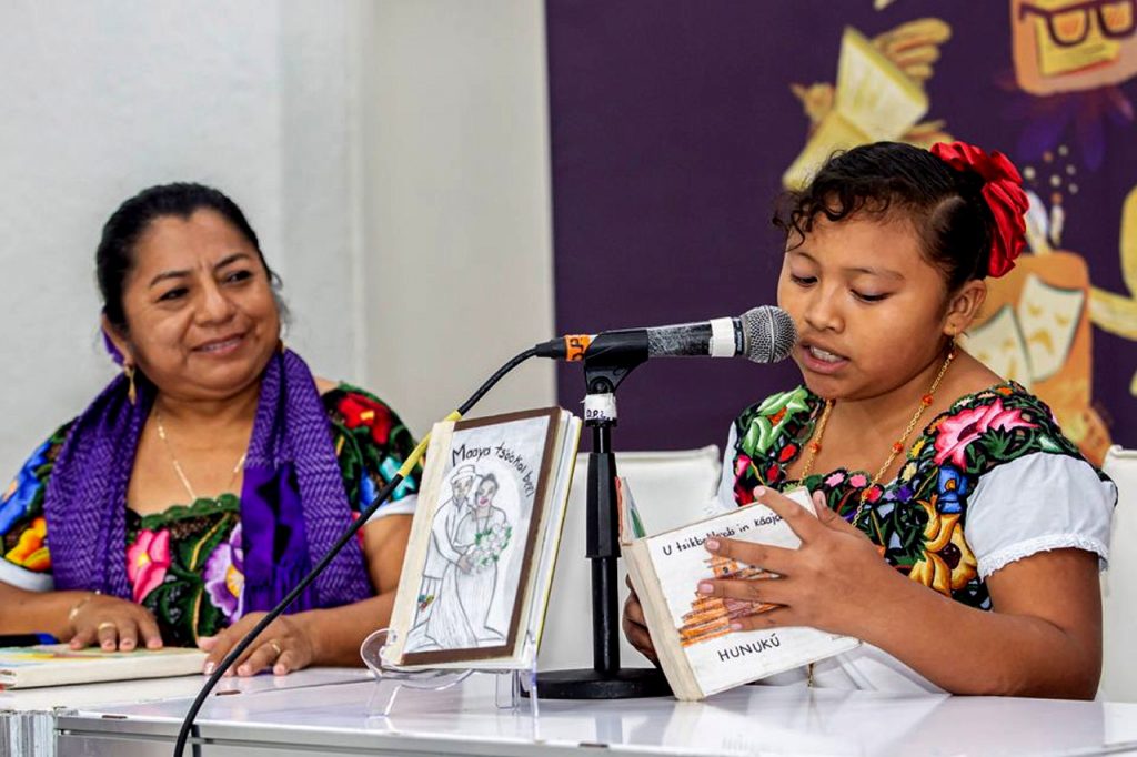 En el evento se dieron a conocer algunos ejemplares que forman parte del acervo de más de 100 textos escritos a mano en maya e ilustrado con los dibujos y cocreaciones con maestras, maestros, así como madres y padres de familia que han colaborado.
