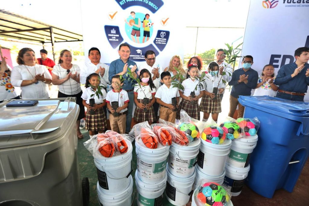 De igual manera, se entregó material deportivo, paquetes “Mejora tu Secu”, con insumos básicos para las instituciones de este nivel y ejemplares de la estrategia estatal de arborización “Un niño, un árbol”.