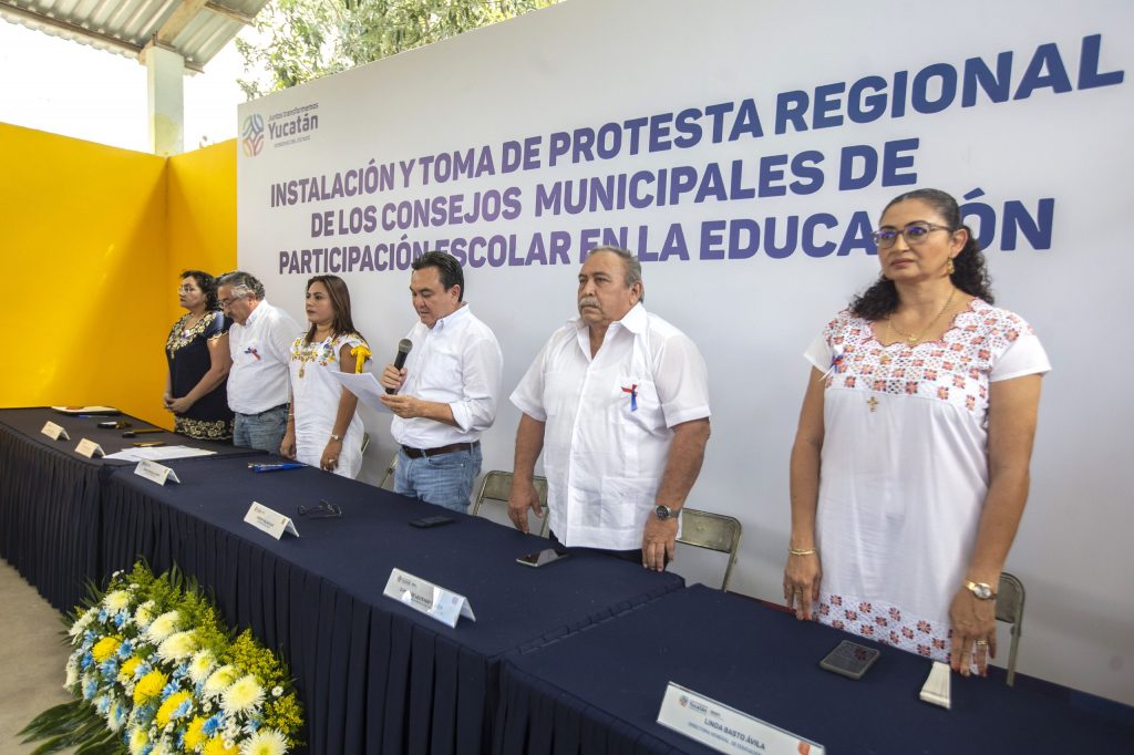 Maxcanú, Yucatán, 05/10/2022.- Continúan las alianzas a favor de la equidad educativa en el interior del estado, gracias a la instalación y toma de protesta de los representantes de los Consejos Municipales de Participación Escolar en la Educación de la región.