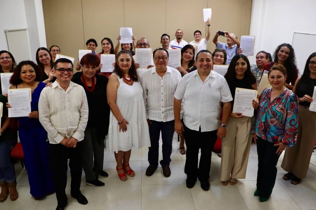 MÉRIDA, YUCATÁN, 14/10/2024. —Con el objetivo de ofrecer un acompañamiento académico y social a las y los docentes de nuevo ingreso, la Secretaría de Educación del Gobierno del Estado de Yucatán (SEGEY), entregó constancias a 22 nuevos tutores de Educación Básica para el ciclo escolar 2024-2025.