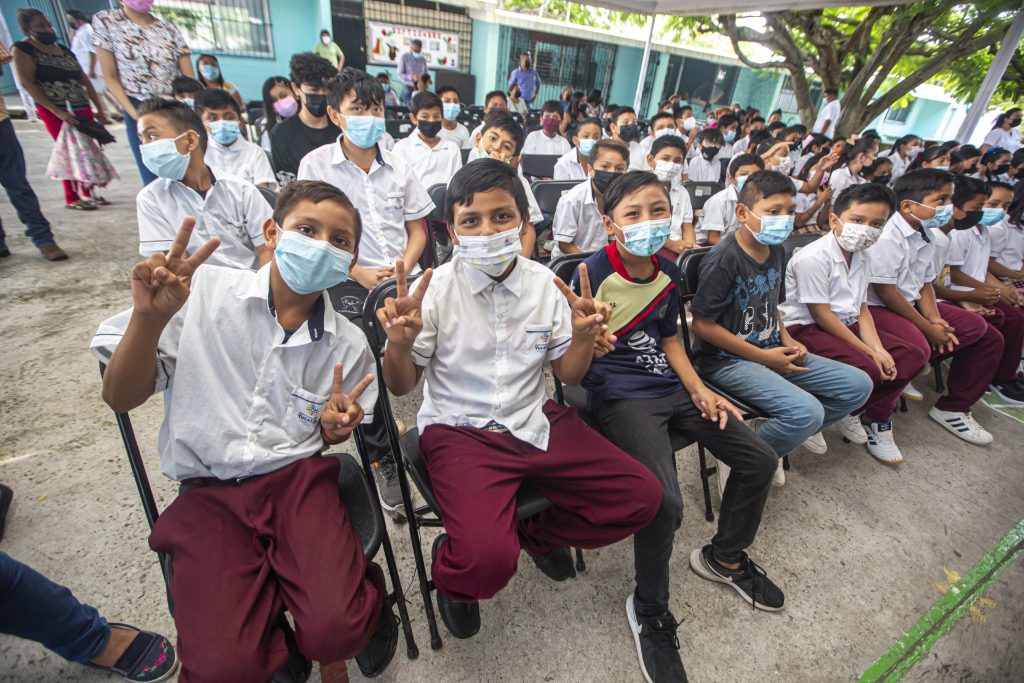 En tanto las otras dos escuelas de turno matutino y vespertino respectivamente, también recibieron sillas y mesas para estudiantes y docentes, así como impresora, proyector, ventilador de techo y un kit deportivo, con una inversión de $94,429. 50, para beneficio de 728 estudiantes.