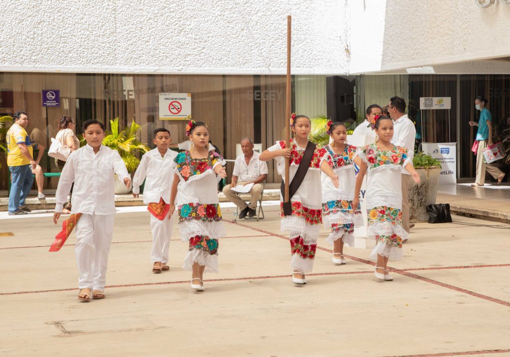 >>>Con el propósito de fomentar el amor por las raíces yucatecas, alumnos de nivel primaria participan en el concurso de escoltas con instrucciones en lengua maya.