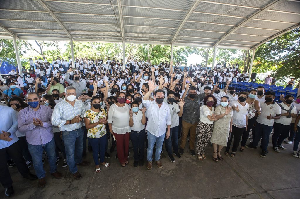 Vidal Aguilar lideró la visita a los centros educativos, acompañado de autoridades de la Segey, directores de las escuelas, representantes sindicales, del Idefeey, docentes, padres de familia, alumnas y alumnos.