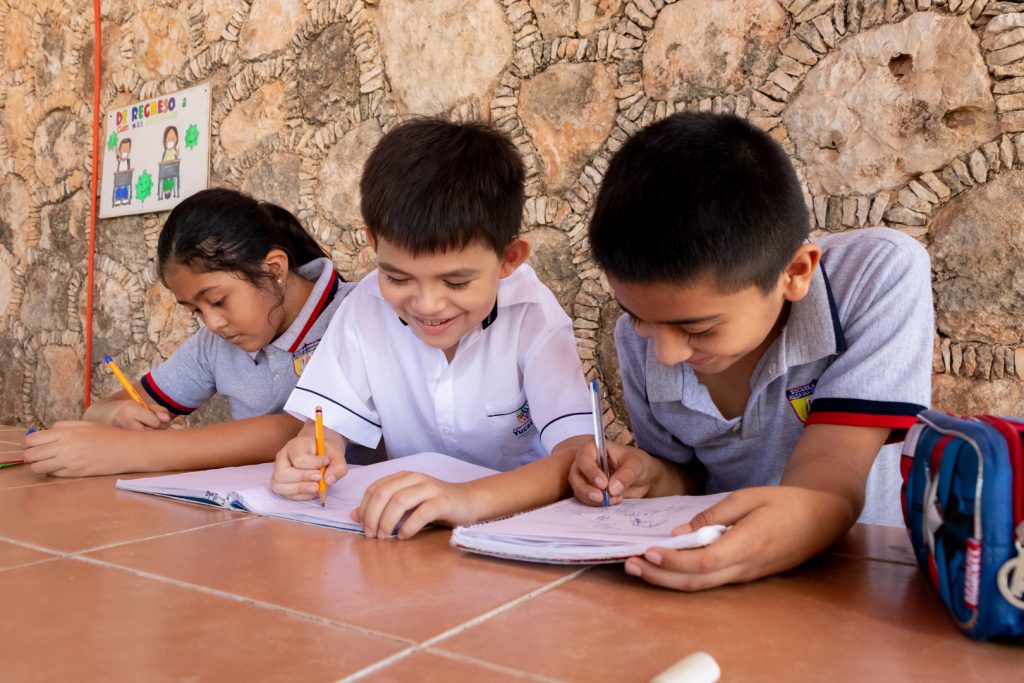 TICUL, 10/01/2023. —Los estudiantes, Naibi Ramón Ojeda, Pablo Garma Mejía y Edrik Pérez Ramírez, de quinto grado de la escuela primaria “Estado de Campeche” del municipio de Ticul, representarán a México en Feria Nordestina de Ciencia y Tecnología en Brasil.