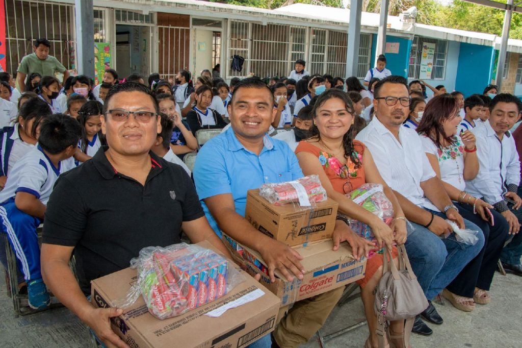 TETIZ, YUCATÁN, 01/05/2023. —Fueron 954 paquetes de pastal dental y cepillos entregados por la Secretaría de Educación del Gobierno del Estado de Yucatán (SEGEY) en escuelas de los municipios de Tetiz y Hunucmá, esto con el propósito de prevenir enfermedades bucales.