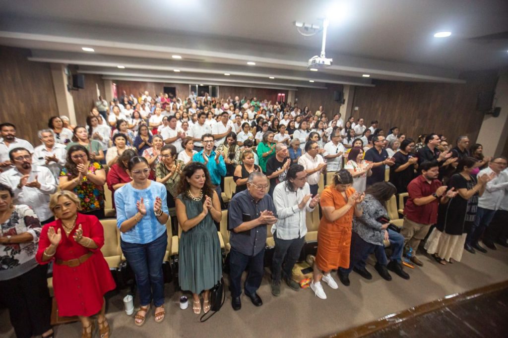El auditorio “José Vasconcelos” de la dependencia estatal, fue sede de un encuentro entre familiares, amigos, docentes y estudiantes normalistas para aplaudir y recordar la trayectoria de la maestra Effy, como era conocida en el magisterio yucateco, sus aportaciones a la conservación de la identidad y la cultura de Yucatán, a través de sus escritos que abarcan todos los géneros literarios y el impacto de su labor invaluable al frente de proyectos educativos.