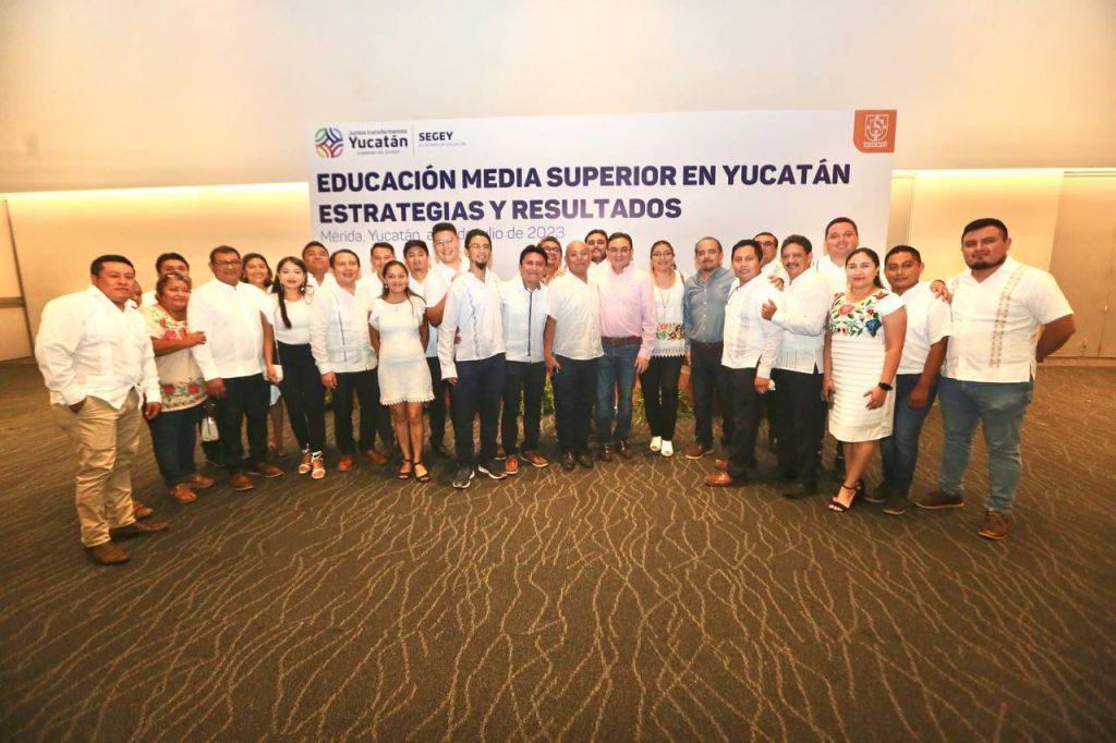 MÉRIDA, YUCATÁN, 14/07/2023. —Con el objetivo de dar a conocer los logros alcanzados durante el ciclo escolar 2022-2023, la Secretaría de Educación del Gobierno del Estado de Yucatán, a través de la Dirección de Educación Media Superior, realizó un encuentro con la participación de directoras y directores de telebachilleratos, Cobay, Conalep, así como de preparatorias estatales que dan atención a las y los estudiantes de este nivel educativo.
