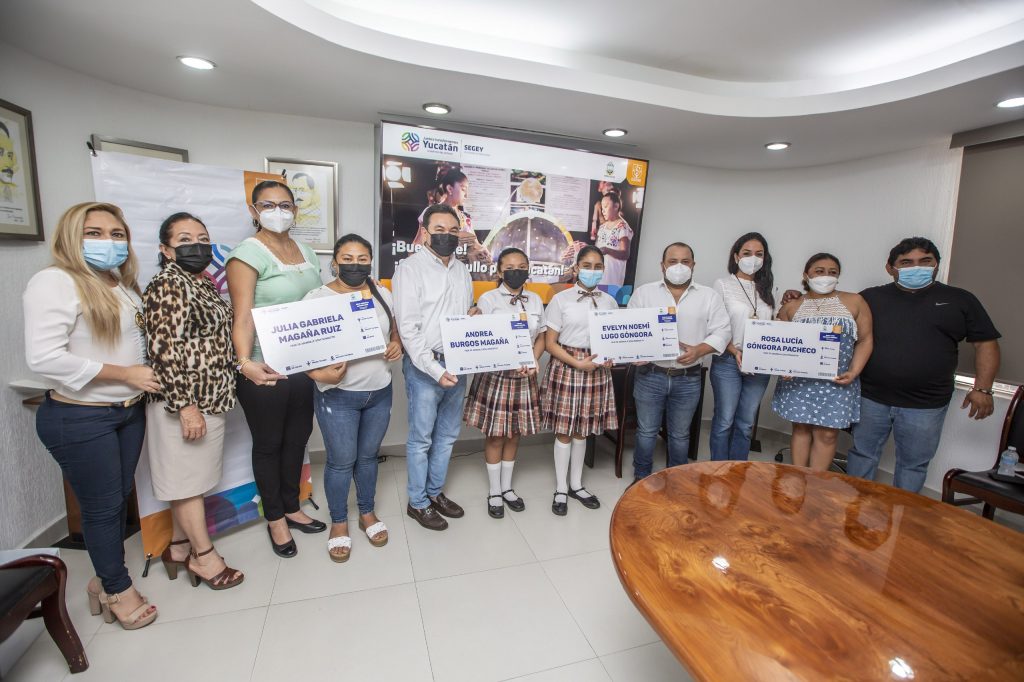 Mérida, 4/08/2022.- La Secretaría de Educación del Gobierno del Estado (SEGEY), en reconocimiento al trabajo destacado de las alumnas Evelyn Noemí Lugo Góngora y Andrea Gabriela Burgos Magaña egresadas de la primaria “Valentín Gómez Farias” de Oxkutzcab, entregó apoyos de transportación para que las niñas representen a Yucatán y al país, en la ExpoCiencias internacional “Facitec Girasoles Paraguay 2022” a realizarse del 22 al 28 de agosto.
