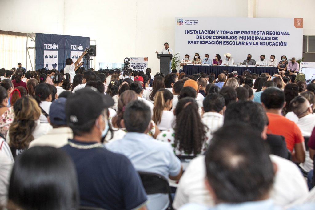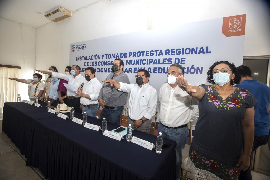 Tizimín, Yucatán, 22/06/2022.-  Con el propósito de coordinar esfuerzos entre gobierno, escuelas y familias para mejorar la Educación en las comunidades del oriente del estado, siete alcaldes tomaron protesta para liderar los Consejos Municipales de Participación Escolar en la Educación de la región.