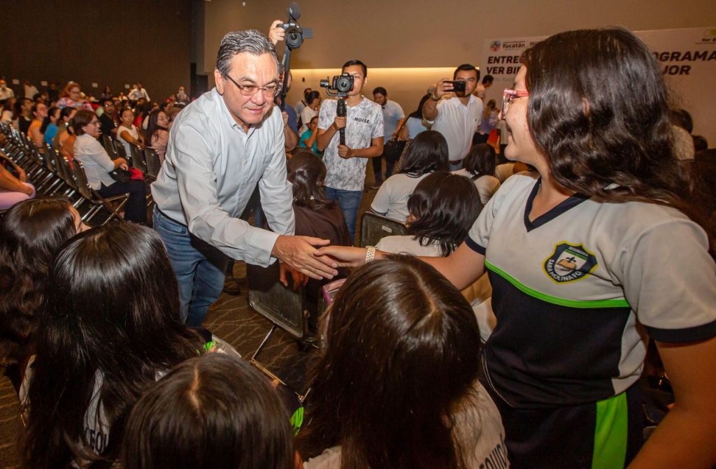 La entrega de los lentes se realizó en el salón Uxmal del Centro de Convenciones y Exposiciones Yucatán Siglo XXI. El programa Ver Bien para Aprender Mejor tiene como objetivo dotar de anteojos de alta calidad a los niñas, niños y adolescentes de las escuelas públicas que padecen problemas visuales como miopía, hipermetropía y astigmatismo.