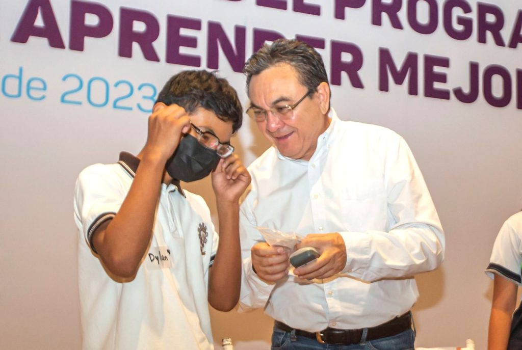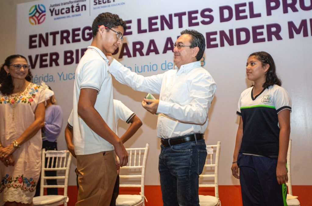 MÉRIDA, YUCATÁN, 29/06/2023. —Con el objetivo de favorecer el aprovechamiento y rendimiento de los alumnos de nivel primaria y secundaria, el titular de la Secretaría de Educación del Gobierno del Estado de Yucatán (Segey) en sinergia con la Fundación Ver Bien para Aprender Mejor hizo entrega de 9,771 lentes a estudiantes de 237 escuelas primarias y 68 secundaria de Yucatán.