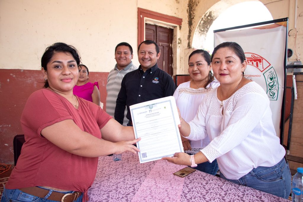 En el acto de entrega de certificados, el coordinador de Educación Física, Luis Fernando Che Dzib, en representación del secretario de Educación, Liborio Vidal Aguilar, hizo entrega de la documentación correspondiente a 28 personas que concluyeron su primaria y 29 que finalizaron su secundaria.