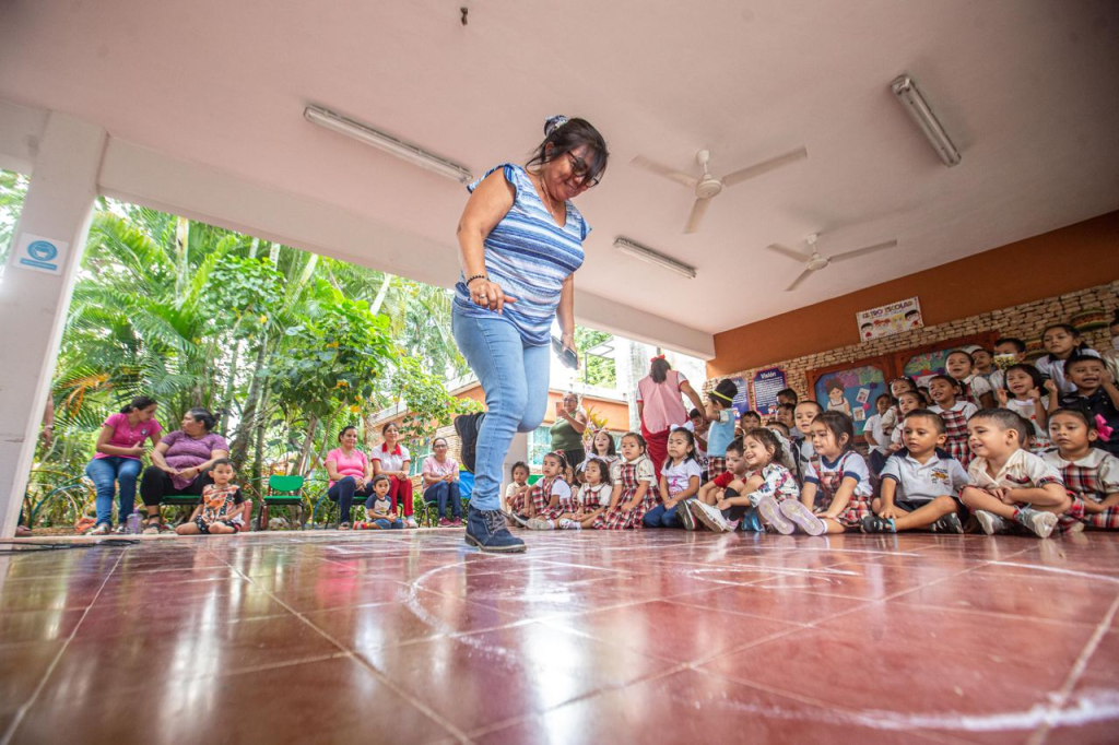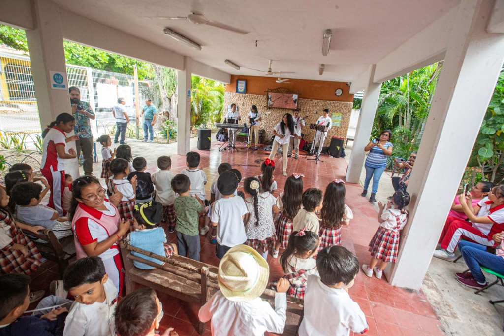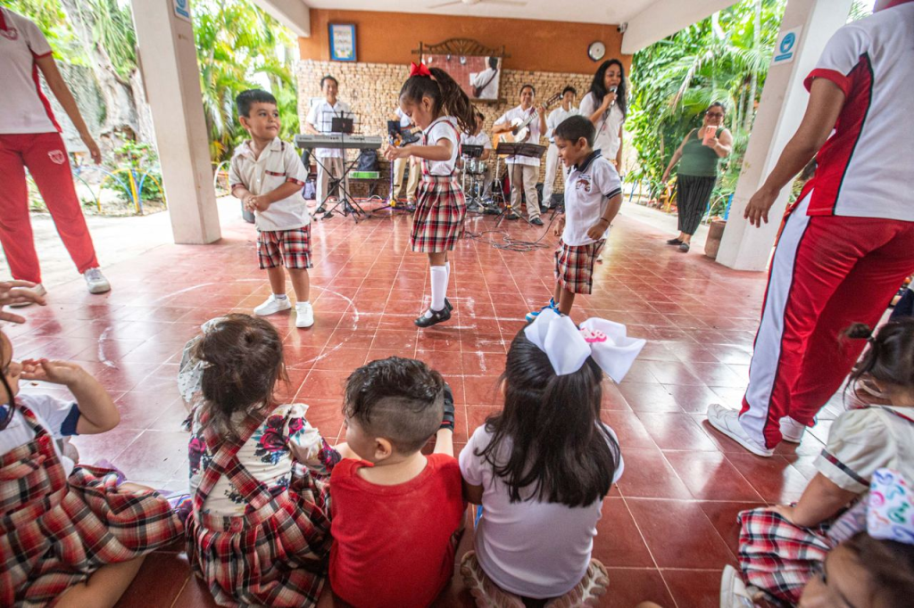 MÉRIDA, YUCATÁN, 26/11/2023. —Para que niñas y niños de nivel Preescolar desarrollen habilidades artísticas a través de la música y los instrumentos musicales, la Secretaría de Educación del Gobierno del Estado de Yucatán (Segey), llevó a cabo la actividad denominada “La Música, elemento infalible para el Desarrollo Integral”, dirigido a niñas y niños del Jardín de Niños “Manuel Vázquez Farfán”, ubicado en la colonia Santa Rosa, de Mérida.