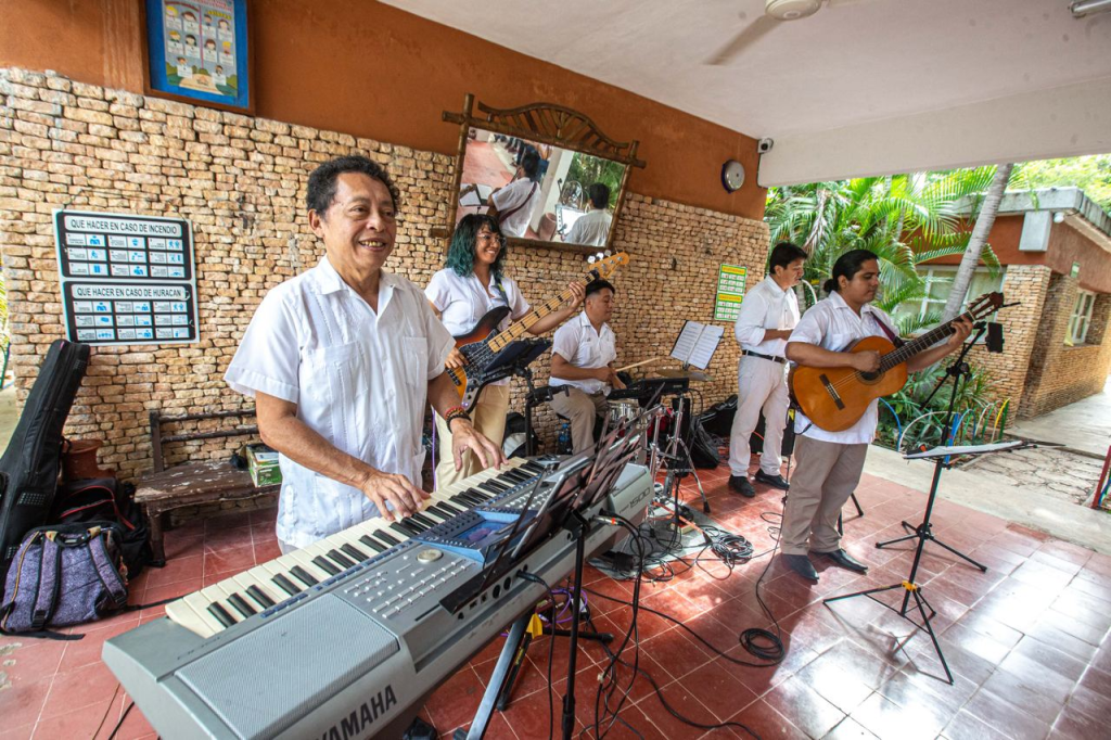El Ensamble “In Kaajal”, conformado por docentes de la Coordinación de Educación Artística del nivel Preescolar, fue el encargado de este acercamiento a los instrumentos musicales, y la música para el desarrollo de capacidades actitudinales, emocionales y corporales de las y los estudiantes durante su primera infancia.