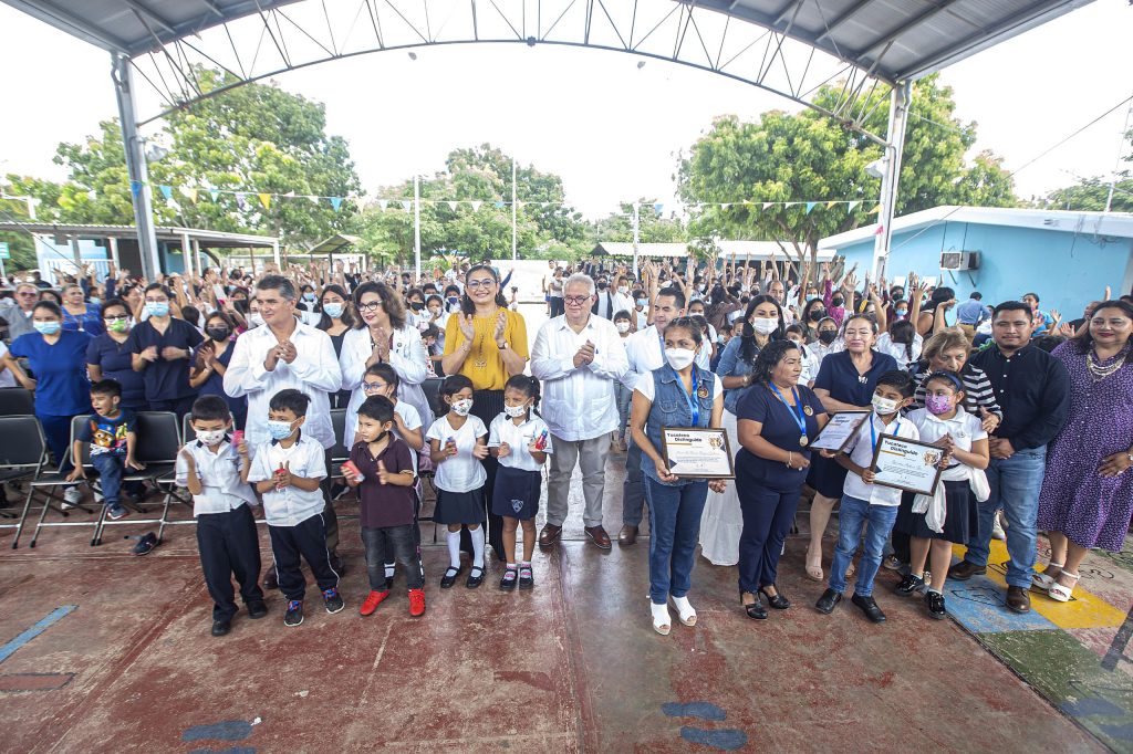 En el marco del evento de la firma de convenio, se entregaron reconocimientos y medallas de “Yucateco Distinguido” de esta comunidad escolar a, Braulio Medina Be del 4 grado grupo A por su destacado desempeño escolar; a la madre de familia Ligia Librada Calam Cauich, por su apoyo, compromiso y velar por el bien de la comunidad escolar y a la maestra María del Rocío Rojas Zaldivar, por su dedicación, amor y calidad humana en su labor docente.
