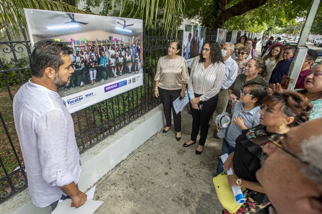 En el último día de actividades, se inauguró la exposición fotográfica “Miradas al magisterio”, la cual consta de 20 imágenes montadas en las rejas de la barda perimetral del edificio central de la Segey y que retrata la labor docente en Yucatán a lo largo de los años.