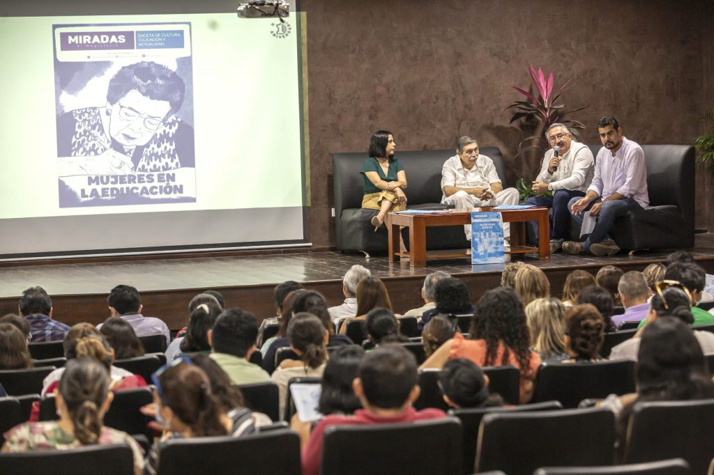 Además, se llevó a cabo el conversatorio “Primer Aniversario de Miradas al magisterio. Gaceta de Cultura, Educación y Actualidad”, con la participación de Leonel Escalante Aguilar, Ariel Avilés Marín y Rosely Quijano León, moderada por Cristóbal León Campos.