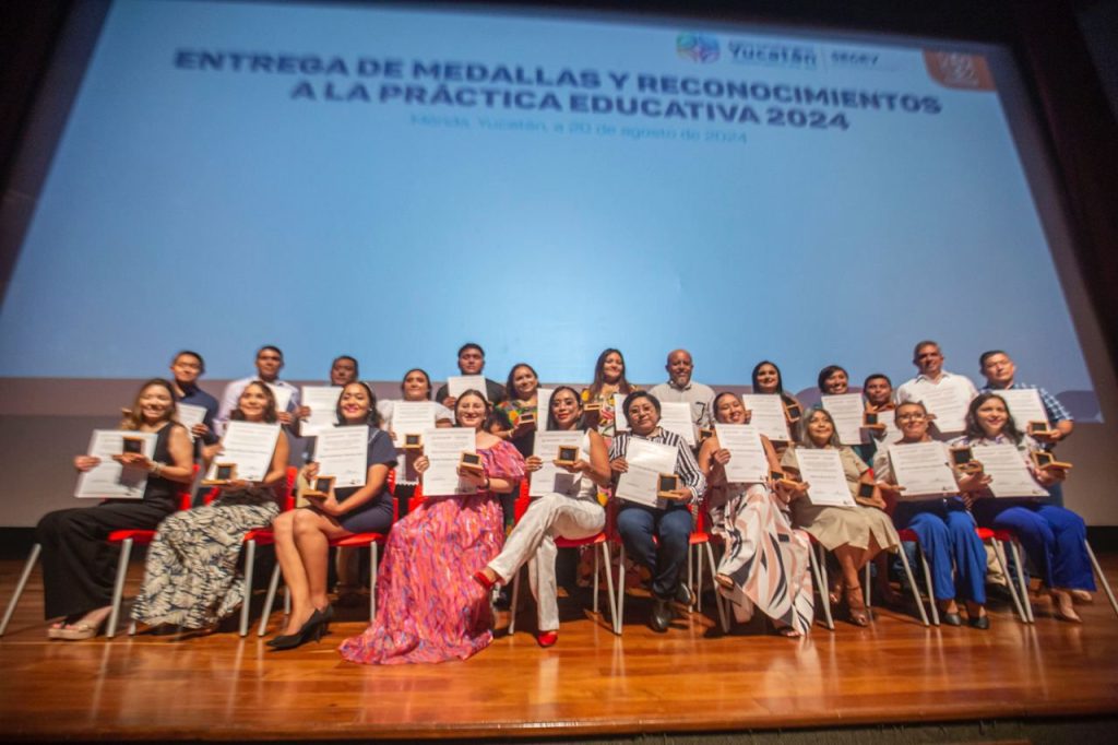 MÉRIDA, YUCATÁN, 21/08/2024. —La Secretaría de Educación del Gobierno del Estado de Yucatán (Segey), hizo entrega de 31 medallas y diplomas a los docentes que obtuvieron los puntajes más altos en el proceso de Reconocimiento a la Práctica Educativa 2024.