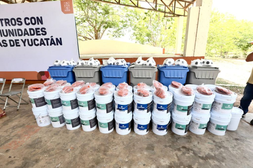 En el municipio de Acanceh, acompañado del presidente municipal, Mario Cruz Herrera y la diputada Manuela Cocom Bolio, Vidal Aguilar hizo entrega de los paquetes “Mejora tu Secu” a 6 planteles educativos de la cabecera y las comisarías de Tepich Carrillo, Canicab, Petectunich y Ticopó.