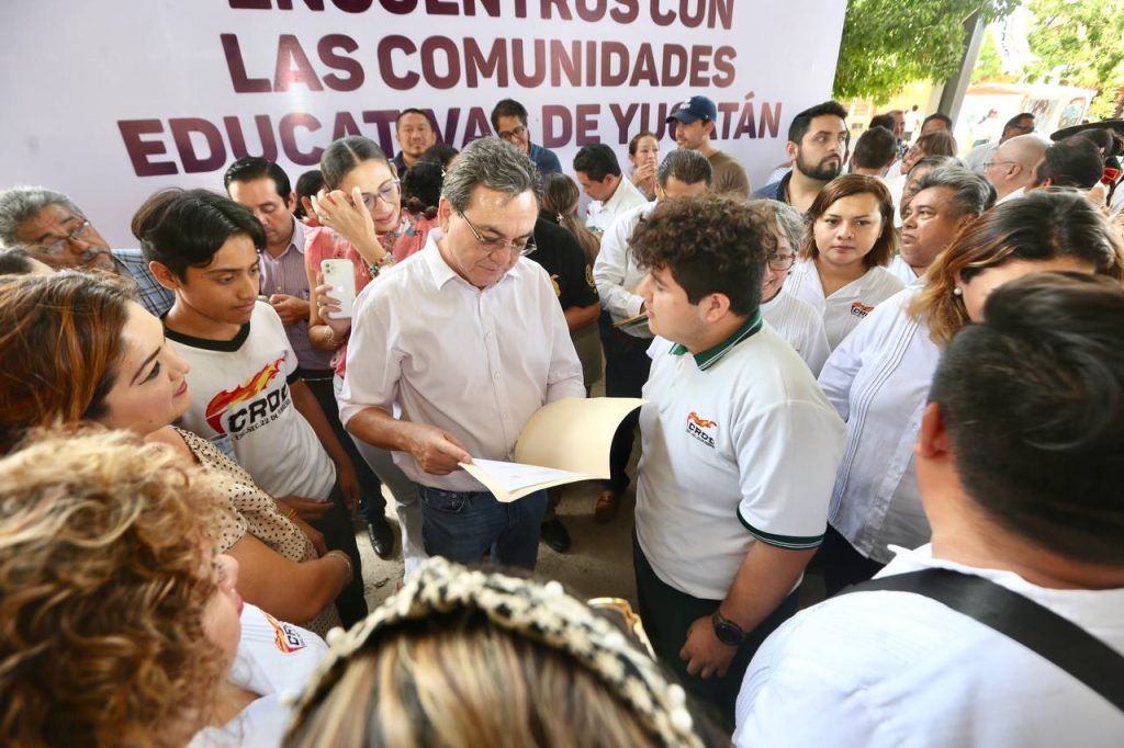 La gira de trabajo del titular de la Segey, inició en la escuela Primaria “Niños Héroes” ubicada al sur de Mérida, continuó por la Secundaria Estatal #1, “22 de febrero CROC” en Vergel III y concluyó en la Secundaria General “Ermilo Abreu Gómez” del municipio de Acanceh.