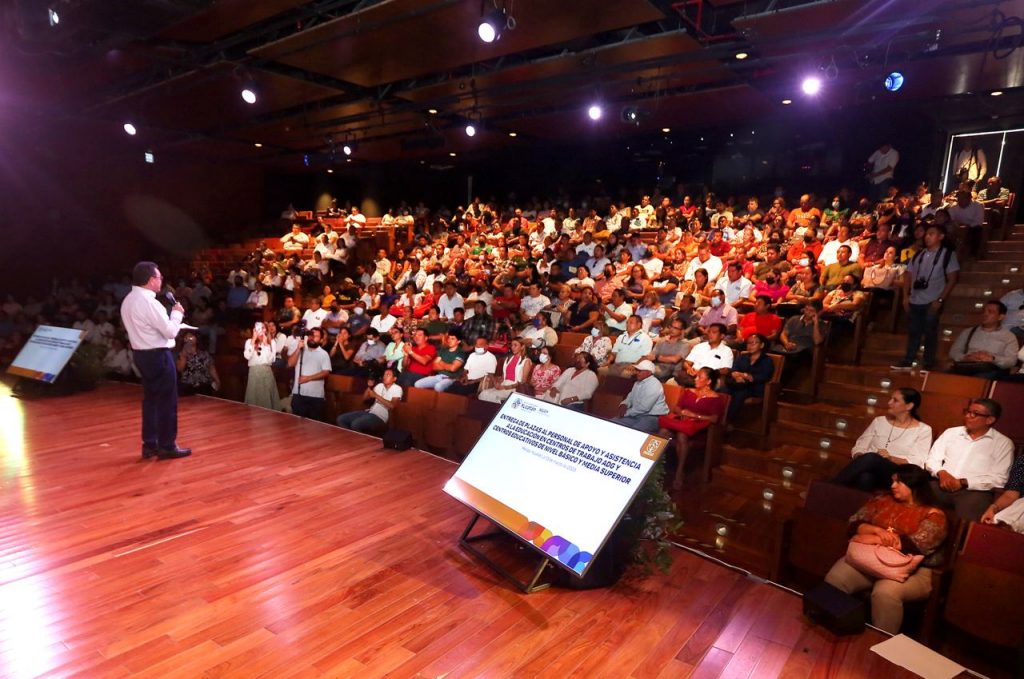 MÉRIDA, YUCATÁN, 13/03/2023. —La Secretaría de Educación del Gobierno del Estado de Yucatán (SEGEY), entregó 264 plazas a Personal de Apoyo y Asistencia a la Educación con mayor continuidad en servicio activo, en reconocimiento a su esfuerzo, mérito y al trabajo que realizan en los centros de trabajo ADG.