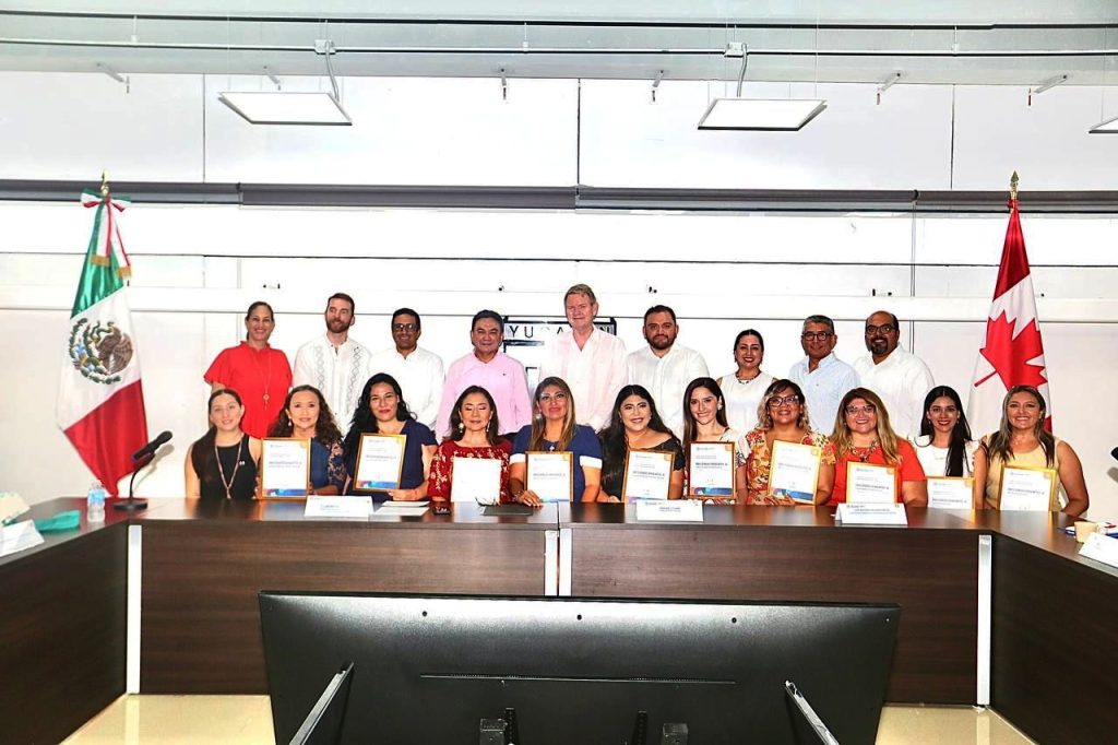 El secretario de Educación del Gobierno del Estado de Yucatán (Segey), Liborio Vidal Aguilar y el Embajador de Canadá en México, Graeme C. Clark, reconocieron el compromiso de las diez docentes, quienes como parte de la Estrategia Ambientes Bilingües de la Agenda Estatal de Inglés, implementan en el aula la enseñanza de este idioma.