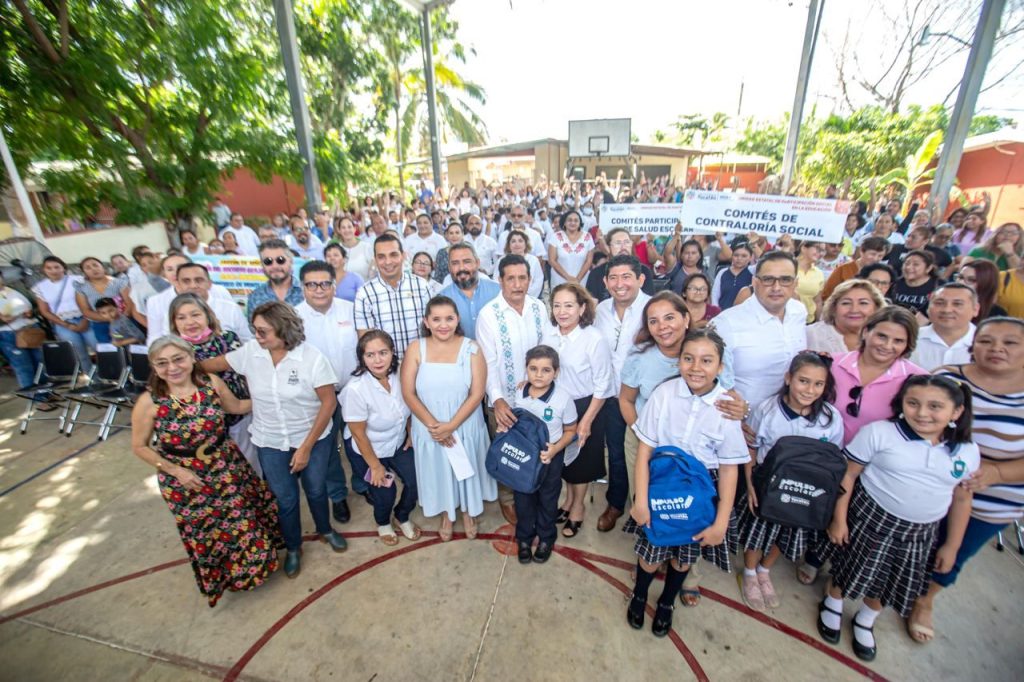 Asimismo, destacó que los apoyos llegarán a 262,795 alumnos, entre los que se encuentran incluidos los 323 paquetes para la escuela “Manuel Crescencio Rejón y Alcalá” del turno matutino y 152 para la primaria del turno vespertino “Laura Méndez de Cuenca”.
