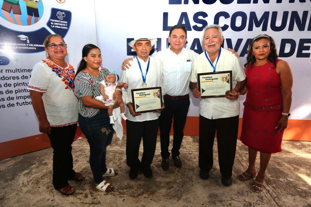 En el marco de estos encuentros, entregó la medalla y reconocimientos, “Yucateco Distinguido” a Álvaro Argáez Narváez y Virgina Puc Acosta de San José Tzal; María Fernández López Tuyub y Eliazar Ruíz Zapata de Molas; José Nemías Tec Uitz de Chablekal y Victor Manuel Dzul Medina y Francisco Javier Magaña García de Cholul.