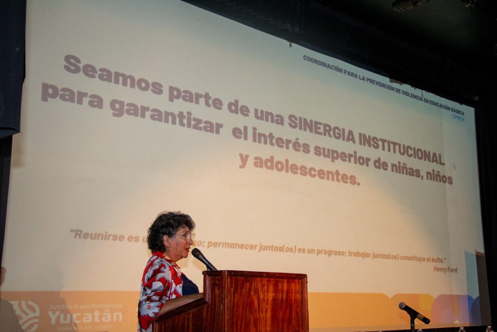 MÉRIDA, YUCATÁN, 04/05/2023. —Con un llamado a fortalecer la sinergia institucional para garantizar del interés superior de niñas, niños y adolescentes, la Coordinación para la Prevención de la Violencia en la Educación Básica (CPREVI), presentó los avances del área tras sus primeros seis meses de operación en el sistema educativo.