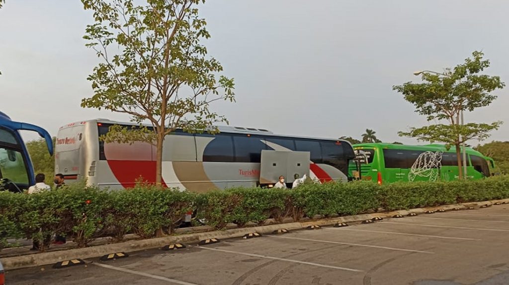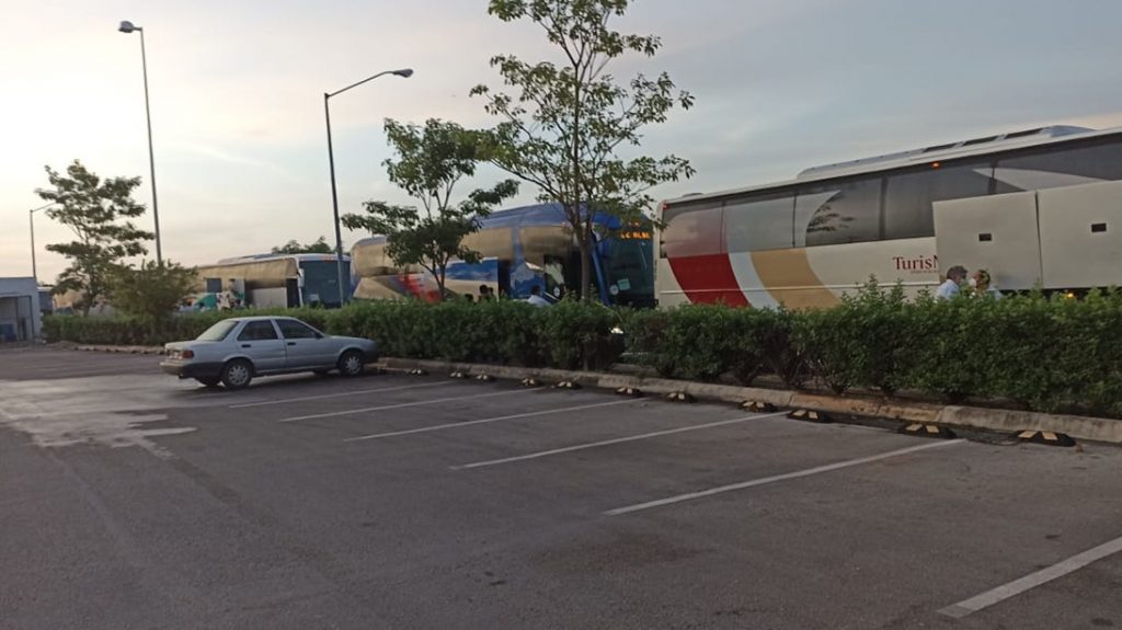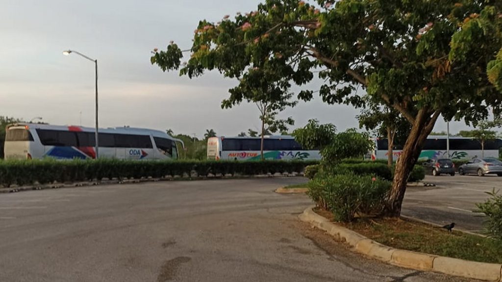 Una lectora de www.diariodelapeninsula.com, explicó que aproximadamente unos 30 camiones que se estacionaron en los alrededores de plaza Sendero (hoy Patio) y subieron personas que salían rumbo a playas del estado de Quintana Roo.