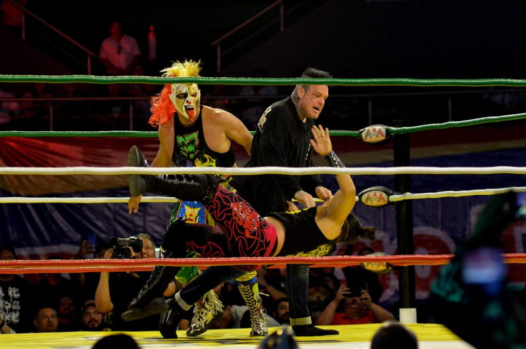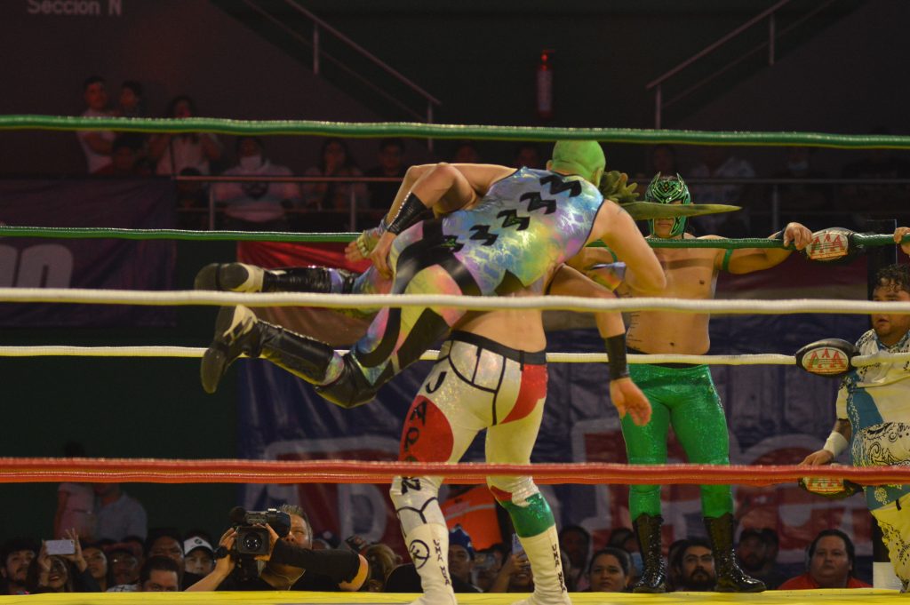 MÉRIDA, 06/02/2023. —La noche del domingo el público de Mérida pudo vivir el espectáculo y la pasión de la lucha libre, con el torneo “Rey de Reyes”; arrancó suspiros, gritos y emociones.