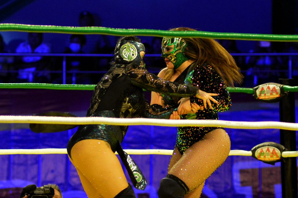 Tras un intenso intercambio de golpes, patadas y llaves, una, una, iban perdiendo fuerza, pero la belleza, se mantenía, pero al final Sexy Star, con su atuendo rosa y su cara enmascarada, se llevó la primera espada de “Rey de Reyes”, femenil, el espectáculo del pancracio que duró más de 180 minutos de emociones.