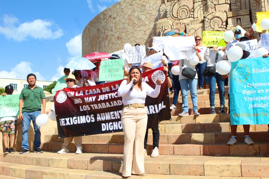 MÉRIDA, YUCATÁN, 29/10/2023. —Una huelga por parte de los agremiados del Sindicato Progresista de Trabajadores del Poder Judicial de Yucatán, podría efectuarse en próximos días debido a que los empleados son objeto de abusos y hostigamientos laborales.