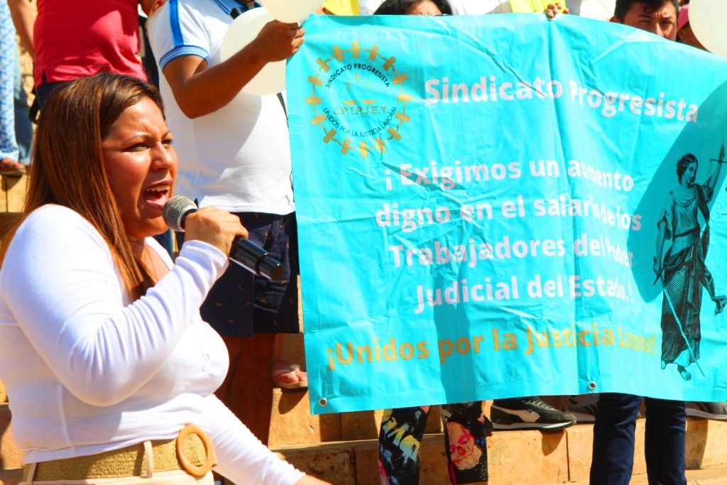“Ya estamos cansados que estén obligando a los trabajadores de Poder Judicial a que renuncien a los sindicatos, sabe muy bien que las defensas de los trabajadores son los sindicatos, y es muy bajo y vil, que consejeros y magistrados, estén dando puestos a cambio que se vende baja de los sindicatos, tenemos que defender nuestro derecho al sindicalismo que fuese la violencia hacia los sindicatos”, finalizó Luisa Inés.