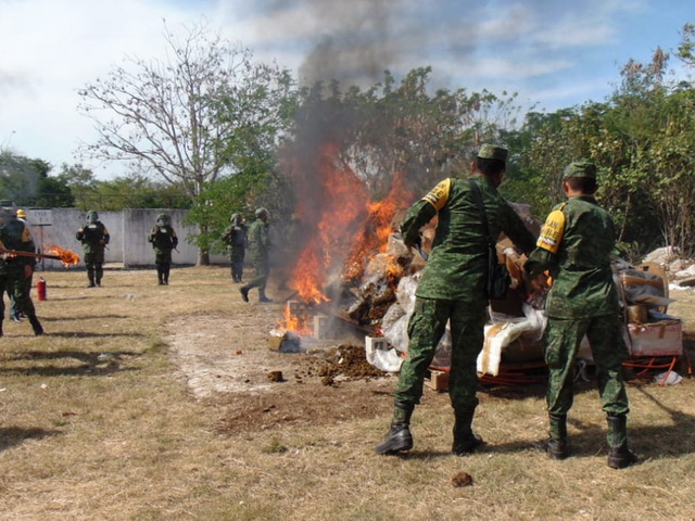 Soldados queman drogas
