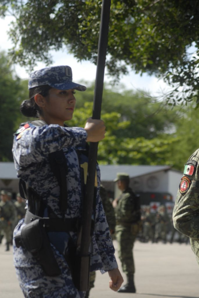 Se destaca la participación de mujeres militares que formarán columnas de las diferentes —compañías de combate—, y que tienen un mayor despliegue en diferentes disciplinas dentro de la Secretaría de la Defensa Nacional.