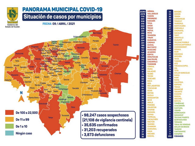 Específicamente, en Mérida se han diagnosticado 22 mil 229 personas contagiadas de Coronavirus (casos acumulados al 8 de abril).
